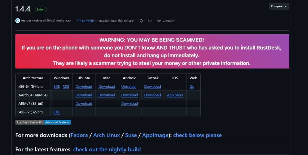 Passo 2- Instale o RustDesk de acordo com o Sistema Operacional do seu PC