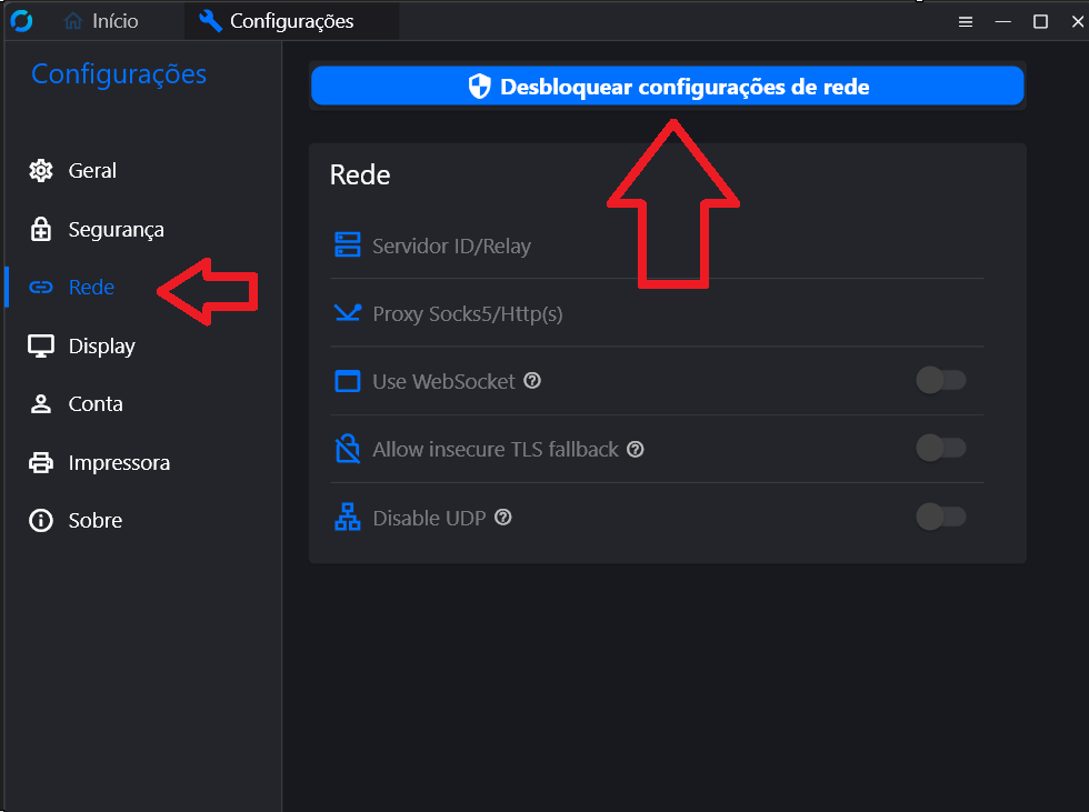 Passo 5- Clicar em “Rede” e em seguida clicar em “Desbloquear configurações de rede” e em seguida “Deseja permitir que o aplicativo faça alterações no dispositivo” clique “Sim”
