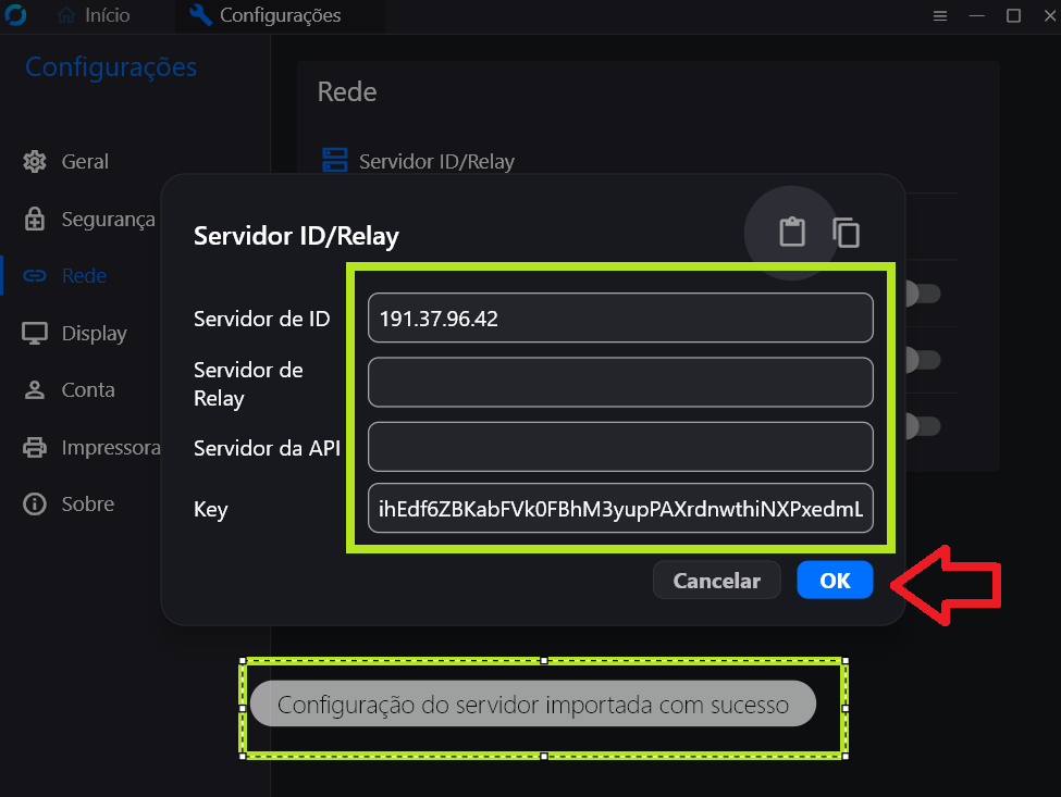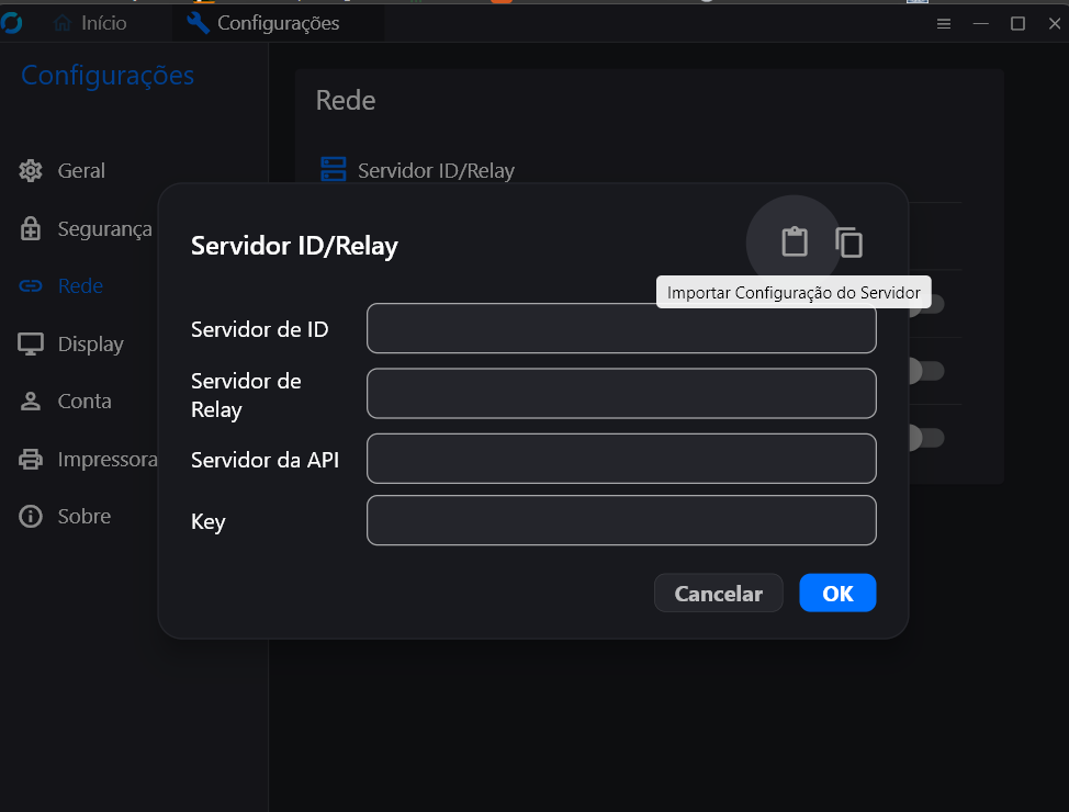 Passo 8 – Clique no “Ícone” da prancheta “Importar configurações do Servidor”